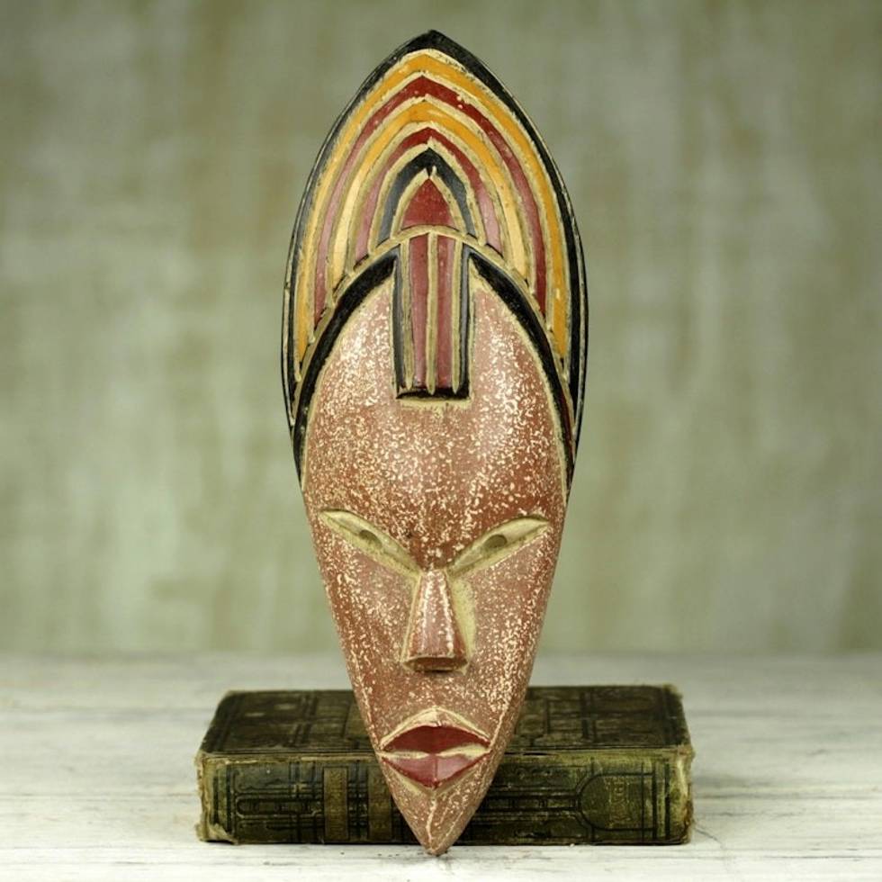 Hand Carved African Sese Wood Wall Mask from Ghana 'Joyfulness is a Crown' Item ID: 2671803558