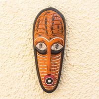 "West African artist Victor Ayambire presents this mask of his original design, Norvi, translated from the Ghanaian Ewe word for 'sister.' The mask is carved from native sese wood and enhanced with acrylic paint to make a stunning piece of wall decor."