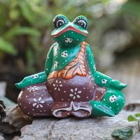 Hand-Carved and Hand-Painted Meditating Frog Wood Figurine 'Contemplating Frog' Item ID: 2671764742
