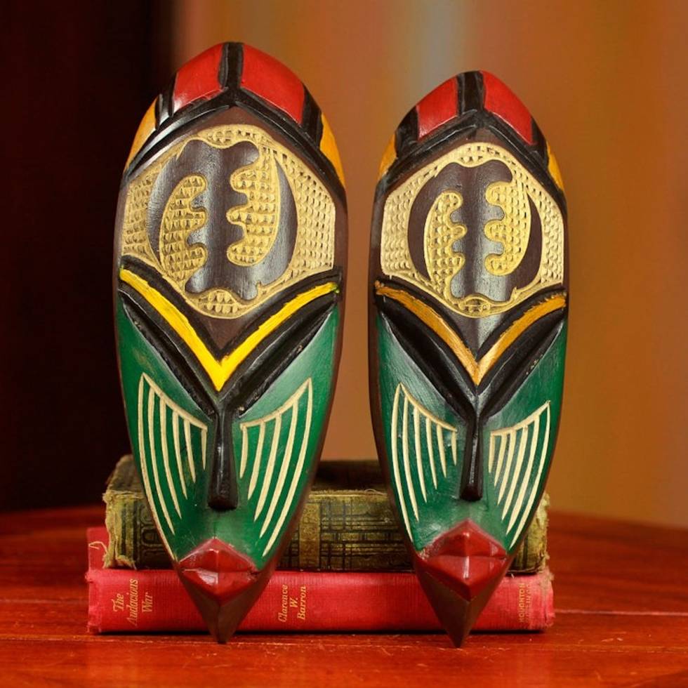 Hand Carved and Painted Adinkra Symbol Masks Pair 'None But God' Item ID: 2671806769