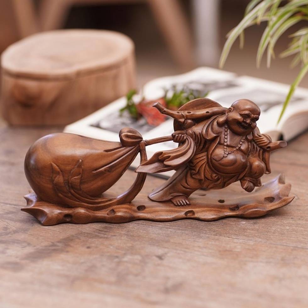 Hand Carved Balinese Acacia Wood Buddha Sculpture 'Buddha of Prosperity' Item ID: 2671475240
