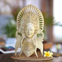 Hand Carved Balinese Janger Dancer Wood Wall Mask 'Janger Dancer' Item ID: 2671476144