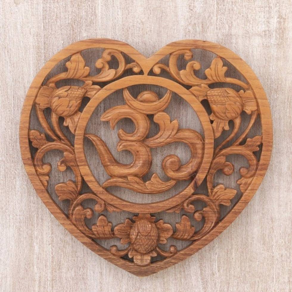 Hand Carved Balinese Om Motif Wood Wall Relief Panel 'Om Love' Item ID: 2671736779