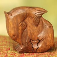 Hand Carved Balinese Wood Puzzle Box 'Dancing Dolphins' Item ID: 2671821334