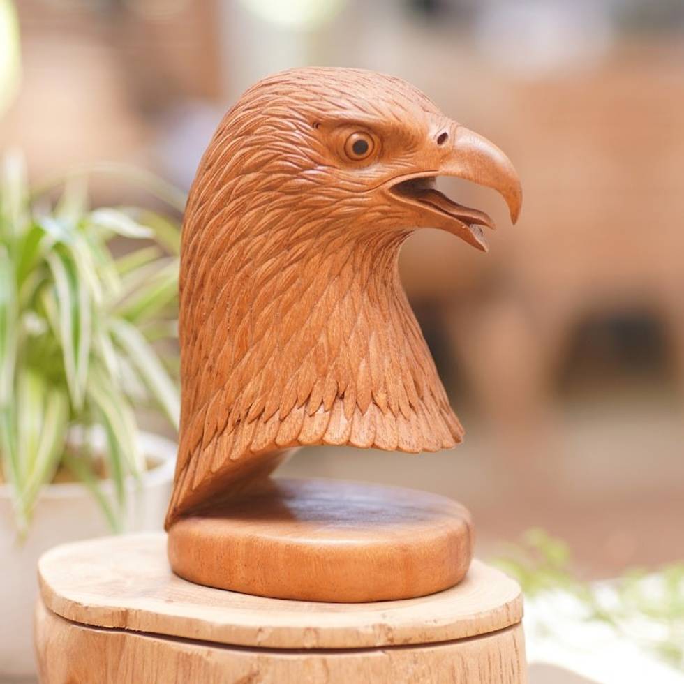 Hand-Carved Bird Sculpture in Balinese Suar Wood 'Eagle's Gaze' Item ID: 2671699893