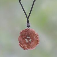 Wonderful dragon with detailed carving. Tea-colored dye makes the intricacies of the carving stand out clearly. Enjoyable to wear. I'm sure it will get many compliments. Leather cord can be resized to different lengths.