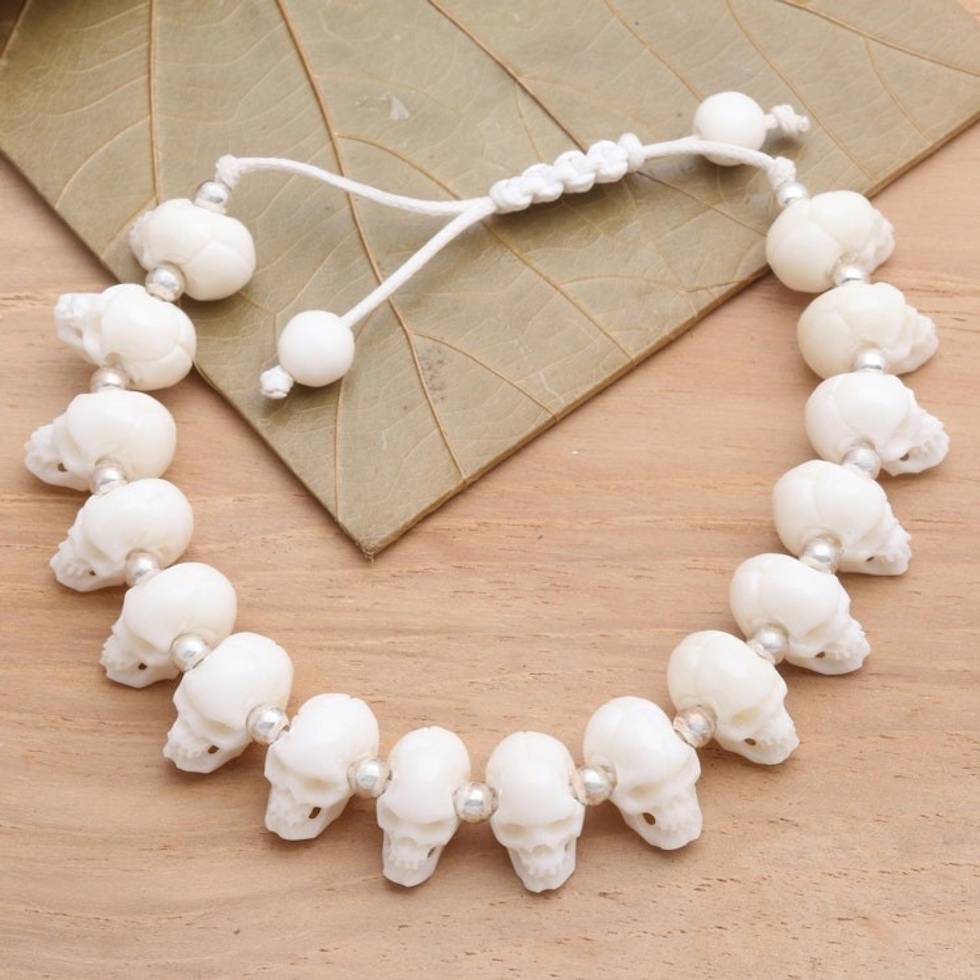 Hand Carved Bone Skull Bead Bracelet 'Bone Collector' Item ID: 2671472572