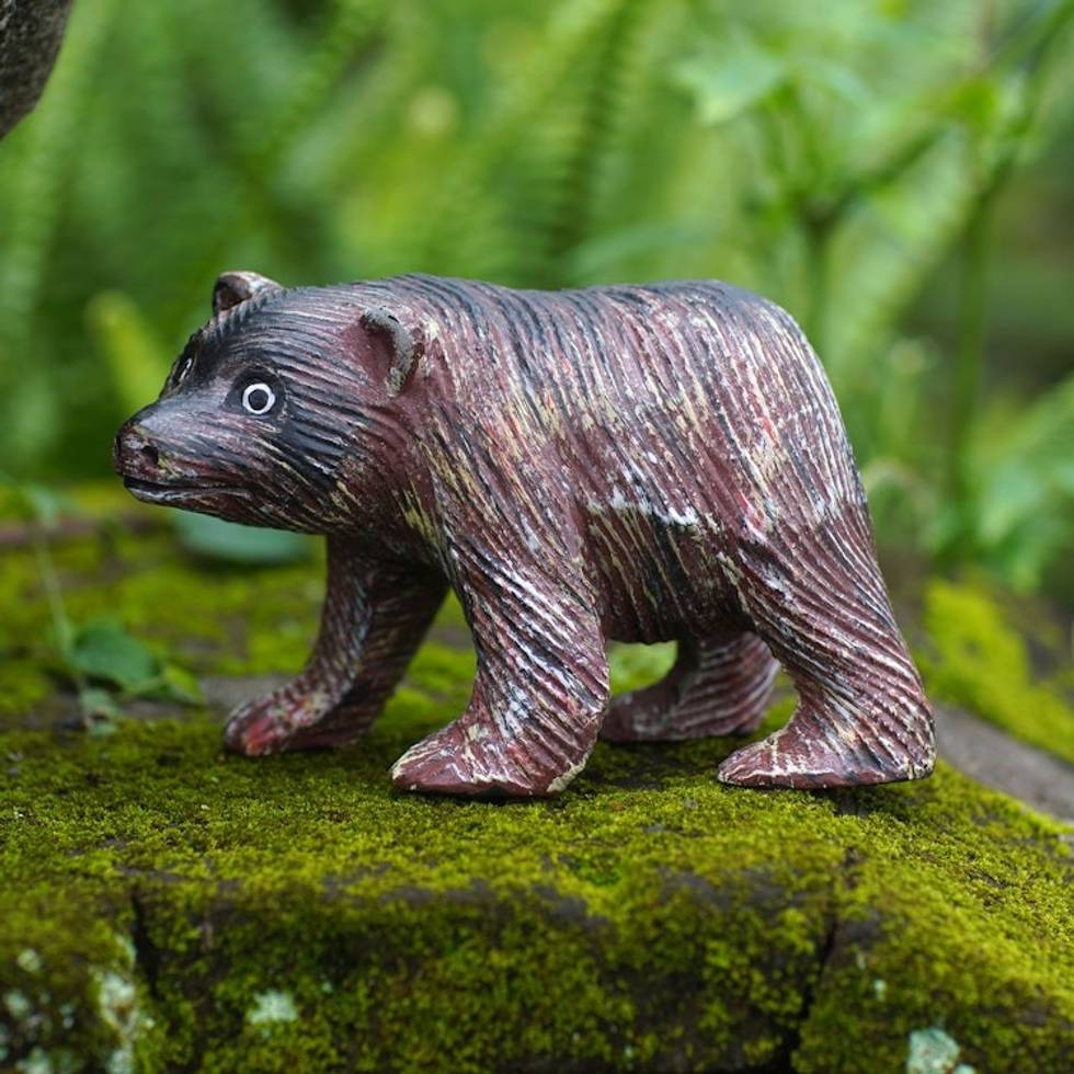 Hand-Carved Brown Suar Wood Sculpture of a Bear 'Courageous Growl' Item ID: 2671763123