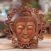 Hand Carved Buddha Face Wall Panel with Floral Engravings 'Buddha Face' Item ID: 2671733935