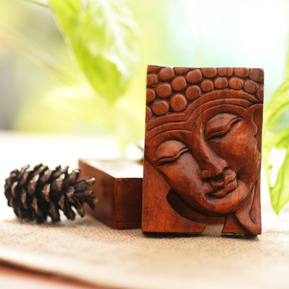 Hand Carved Buddha Motif Puzzle Box from Bali 'Glory of Buddha' Item ID: 2669912947