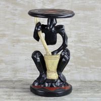 Hand-Carved Cedar Wood Accent Table from Ghana 'A Great Man' Item ID: 2671806137