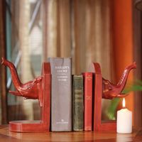 Hand Carved Cedar Wood Bookends Pair 'Elephant Guardian' Item ID: 2671807100