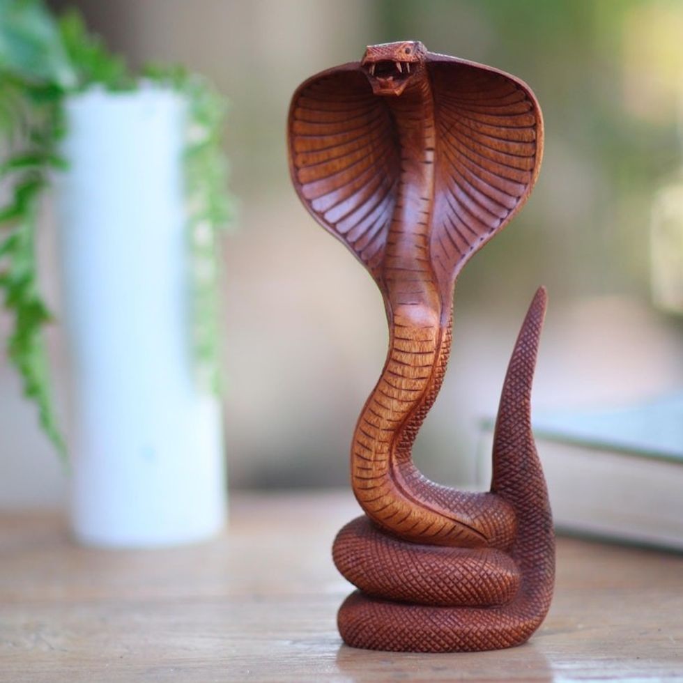 Hand Carved Cobra Sculpture from Bali Artisan 'About to Strike' Item ID: 2671744794