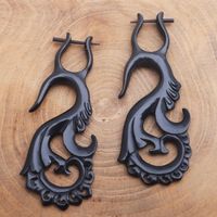 Hand Carved Dark Brown Water Buffalo Horn Hoop Earrings 'Intricacy Unfurled' Item ID: 2669922091