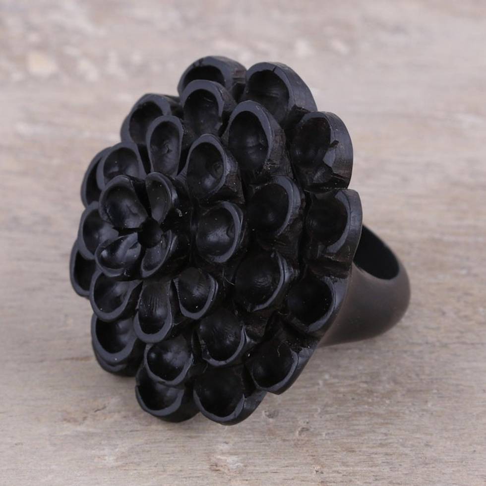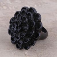 Hand Carved Ebony Wood Marigold Cocktail Ring from India 'Marigold Shadow' Item ID: 2669924651