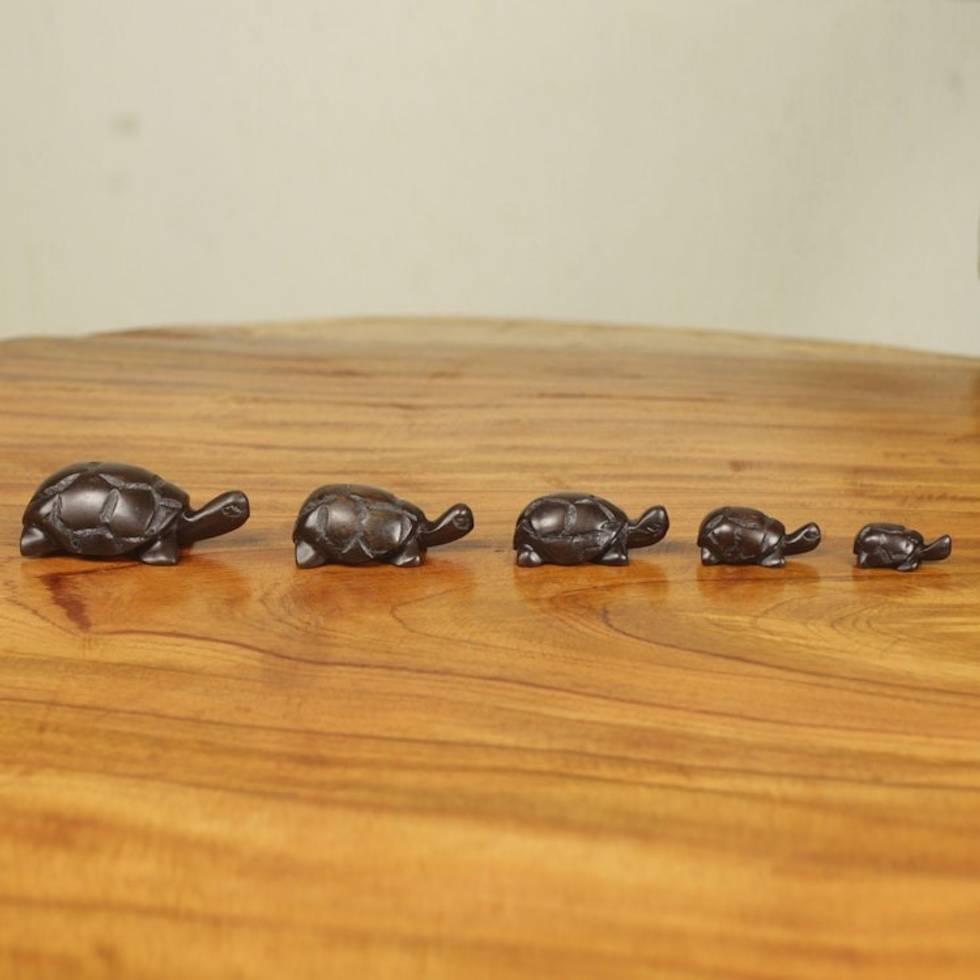 Hand Carved Ebony Wood Turtle Sculptures Set of 5 'Tortoise Family' Item ID: 2671807207