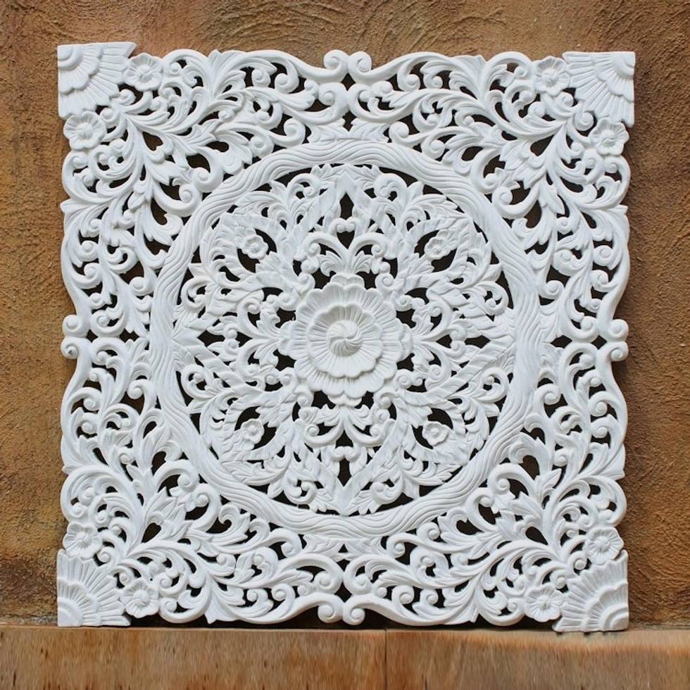 Hand-Carved Floral Acacia Wood Relief Panel from Thailand 'Tropical Flower' Item ID: 2671801086