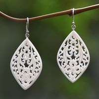 Hand-Carved Floral Bone Dangle Earrings from Bali 'Bali Windows' Item ID: 2671820929