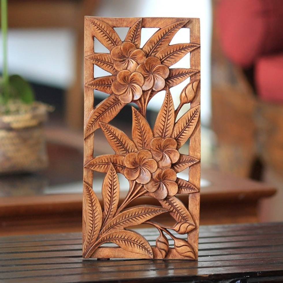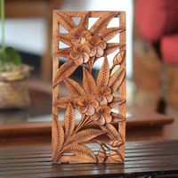Hand Carved Floral Relief Panel 'Sweet Frangipani Flowers' Item ID: 2671699270