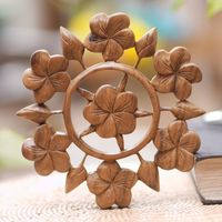 Hand Carved Floral Wood Wall Relief Panel from Indonesia 'Frangipani Garden' Item ID: 2671733143