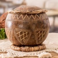 "The enchanting and prosperous Costa Rican forest offers artisan Ruth Mora a high-quality arrangement of materials to create an exquisite accent for your home decor. Working on a dried gourd, the artisan hand-carves a traditional geometric pattern in honor of the region's civilizations, giving the piece a cultural accent."