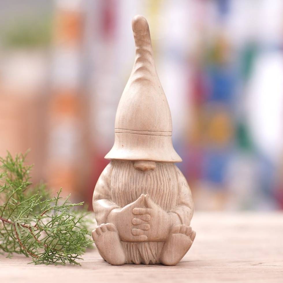 Hand-Carved Gnome Hibiscus Wood Sculpture from Bali 'Gnome in the Home' Item ID: 2669909351