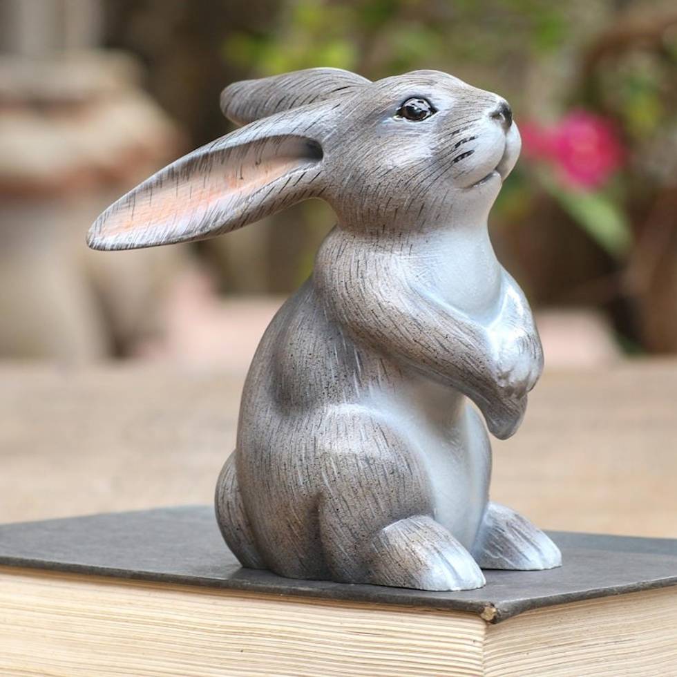 Hand Carved Grey Rabbit Statuette 'Adorable Rabbit in Grey' Item ID: 2670903928