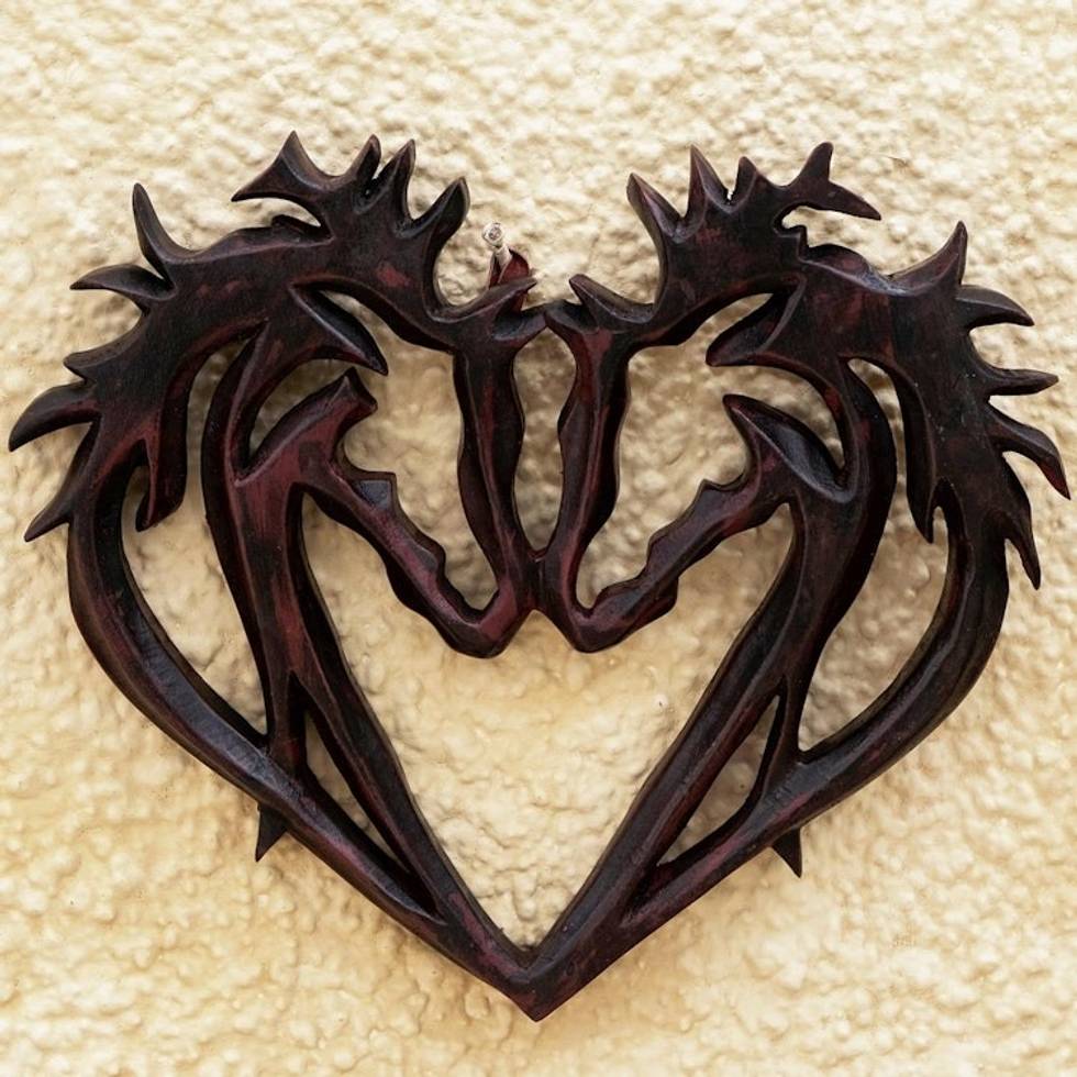 Hand Carved Heart-Motif Sese Wood Relief Panel 'Sweet Love' Item ID: 2671805479