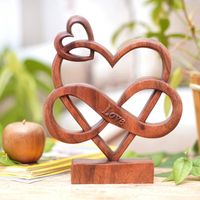 Hand-Carved Heart-Themed Suar Wood Sculpture in Brown 'The Last Love' Item ID: 2676667751