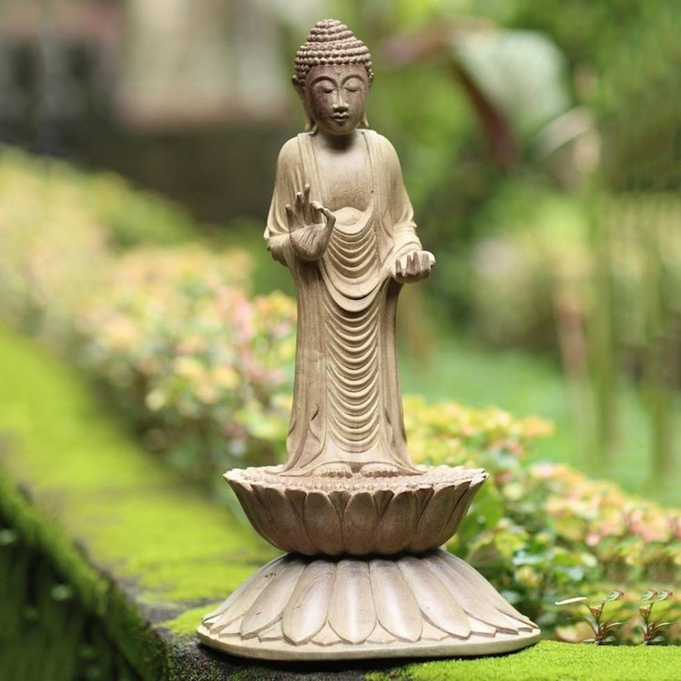Hand Carved Hibiscus Wood Buddha Sculpture 'Buddha Brings Protection' Item ID: 2671745046