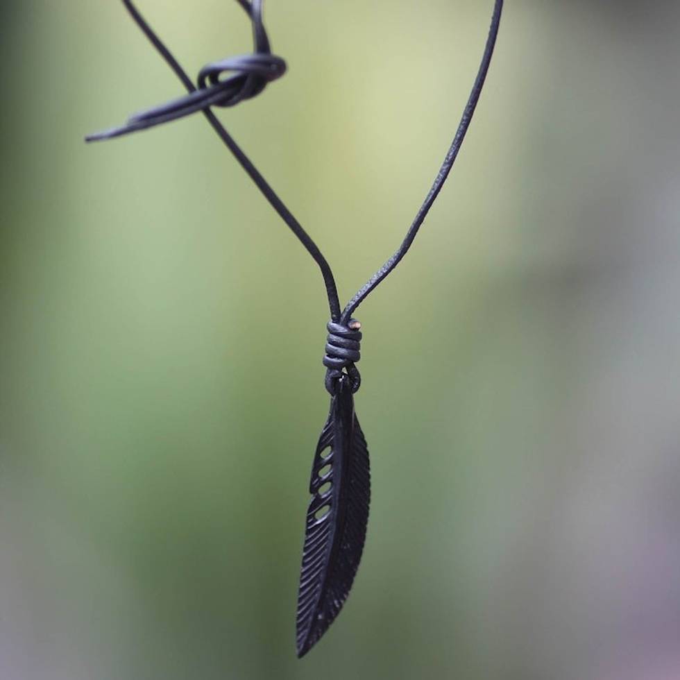 Hand Carved Horn Necklace on Leather Cords 'Crow Feather Totem' Item ID: 2671805289