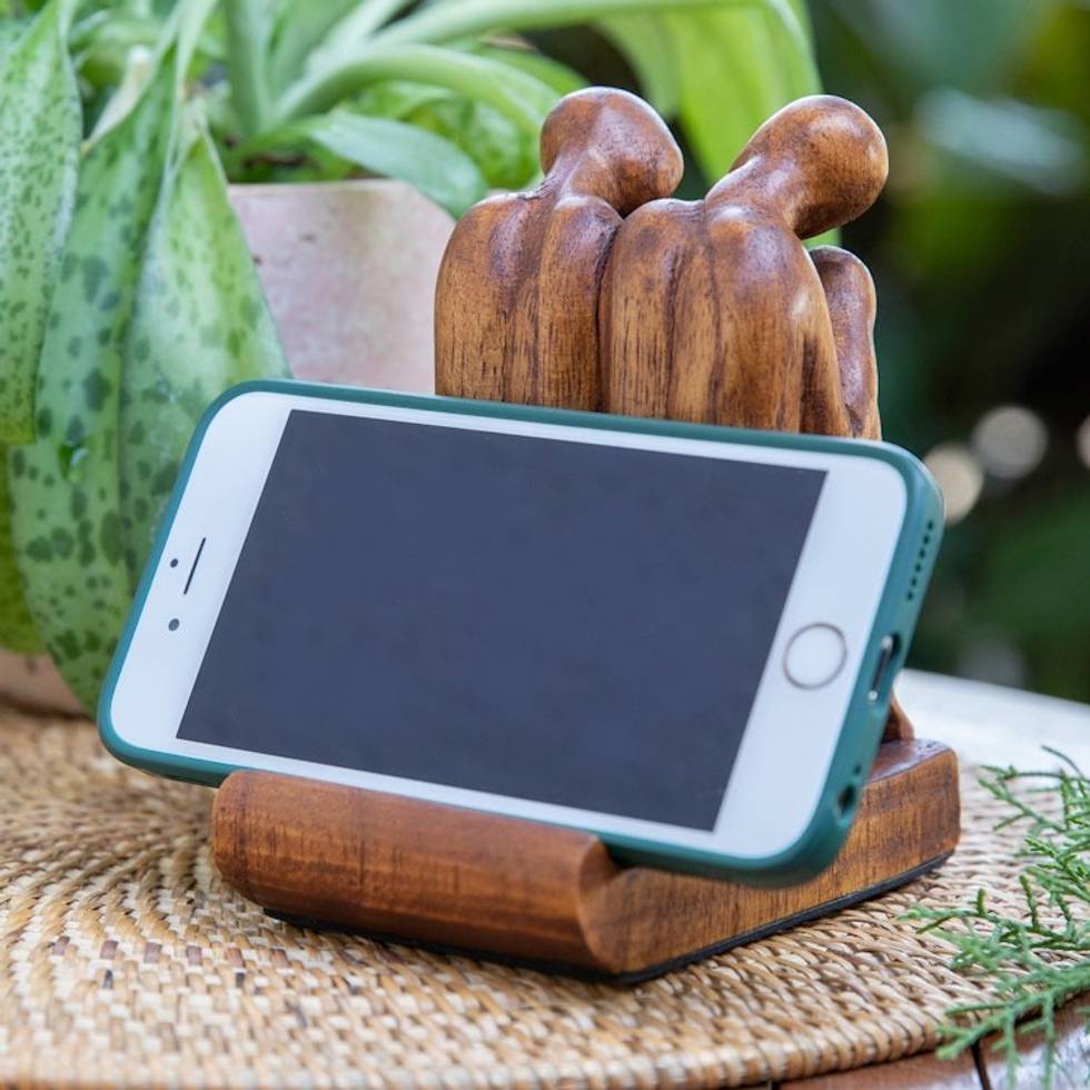 Hand-Carved Inspirational Jempinis Wood Phone Holder 'Best Brotherhood' Item ID: 2671765431