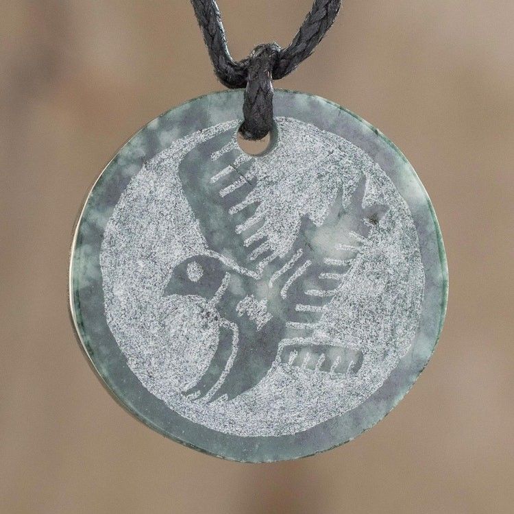 Hand-Carved Jade Eagle Pendant Necklace from Guatemala 'Tz'ikin Eagle' Item ID: 2671777137