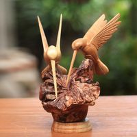 Hand Carved Jempinis Wood Hummingbird Sculpture from Bali 'Hummingbird Couple' Item ID: 2669891640