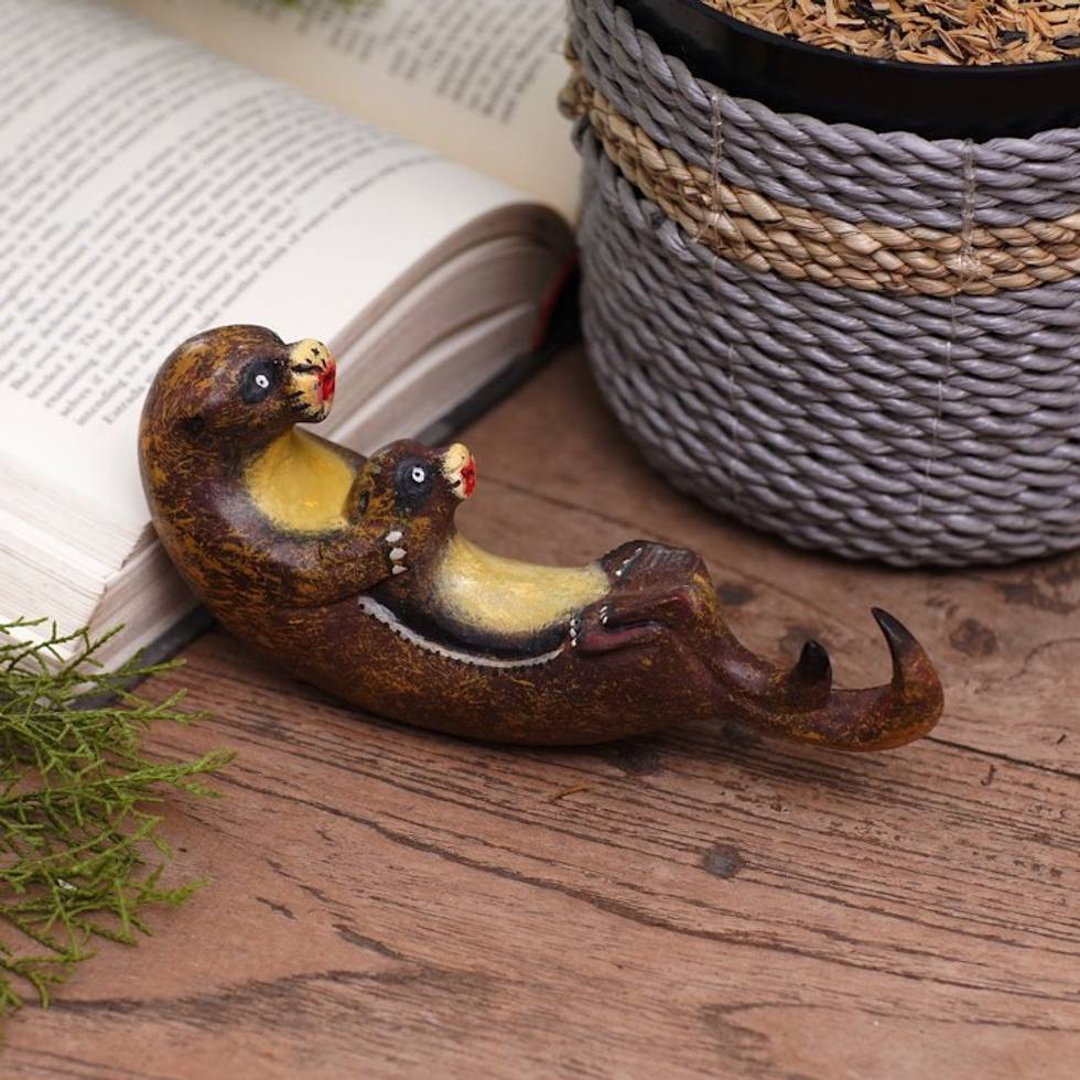 Hand-Carved Jempinis Wood Otter Statuette Painted in Bali 'Otter Swing' Item ID: 2671821582