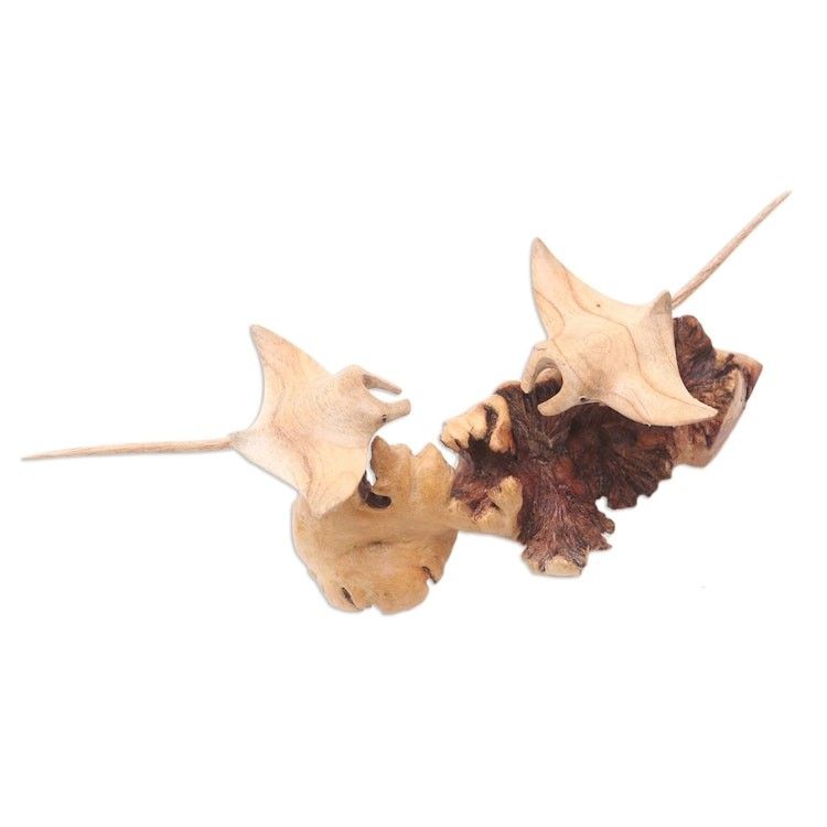 Hand Carved Jempinis Wood Stingray Sculpture 'Stingray Swimmers' Item ID: 2671746187