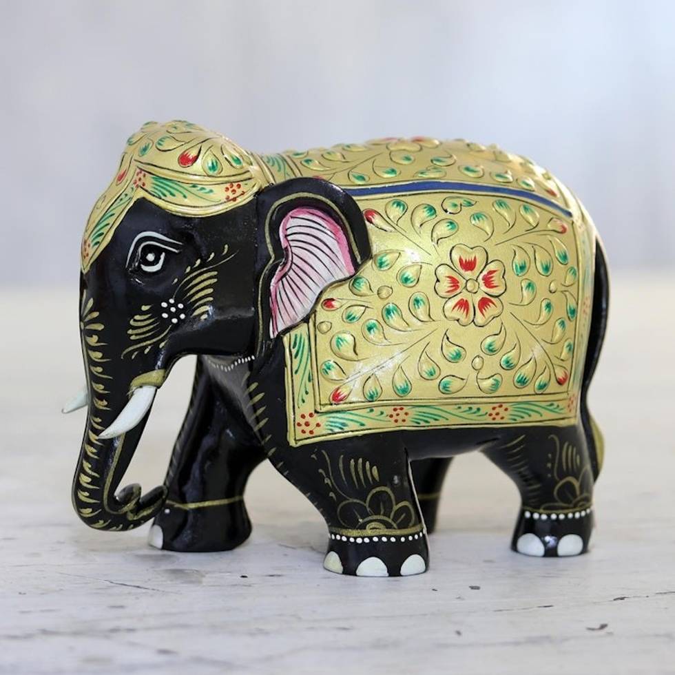 Hand Carved Kadam Wood and Gold Leaf Elephant Statuette 'Golden Robe' Item ID: 2671789592