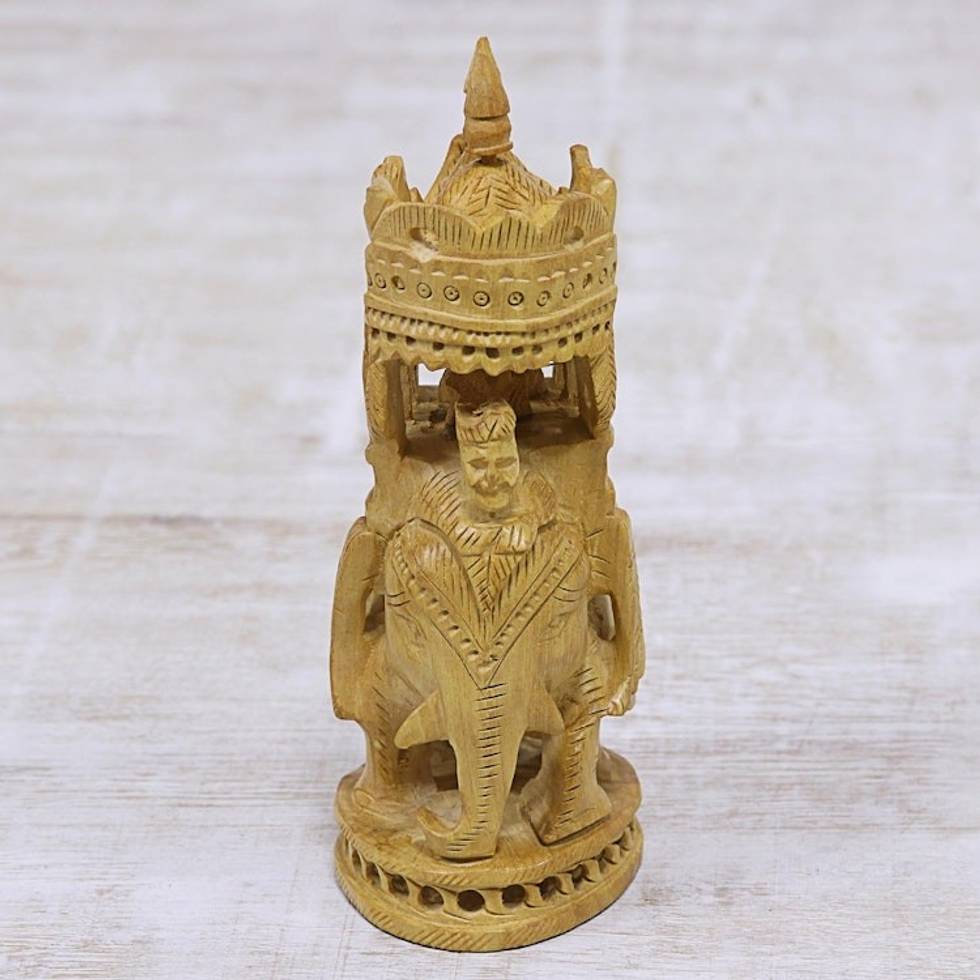 "Hand-carved from a single piece of kadam wood, this delightful figurine depicts an elephant rider on a royal expedition. India's Dayal J. Daryanani presents this fantastic addition to your home decor. You'll appreciate the amazing detail on the royal elephant and palanquin, realized with beautiful open spaces."