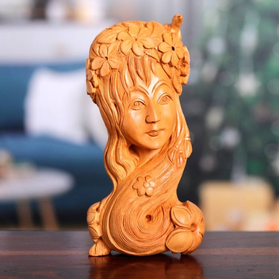 Hand-Carved Kadam Wood Sculpture of Mother Nature 'Natures Tranquility' Item ID: 2671786489