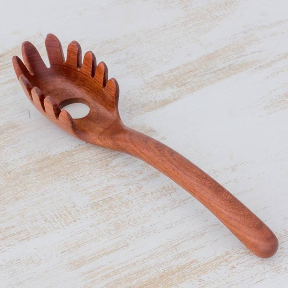 Hand Carved Manchiche Wood Spaghetti Spoon from Guatemala 'Home Cooking' Item ID: 2671626119
