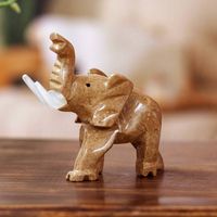 Hand-Carved Marble Sculpture of Brown Elephant Raising Trunk 'Chestnut Trunk Charm' Item ID: 2676647133