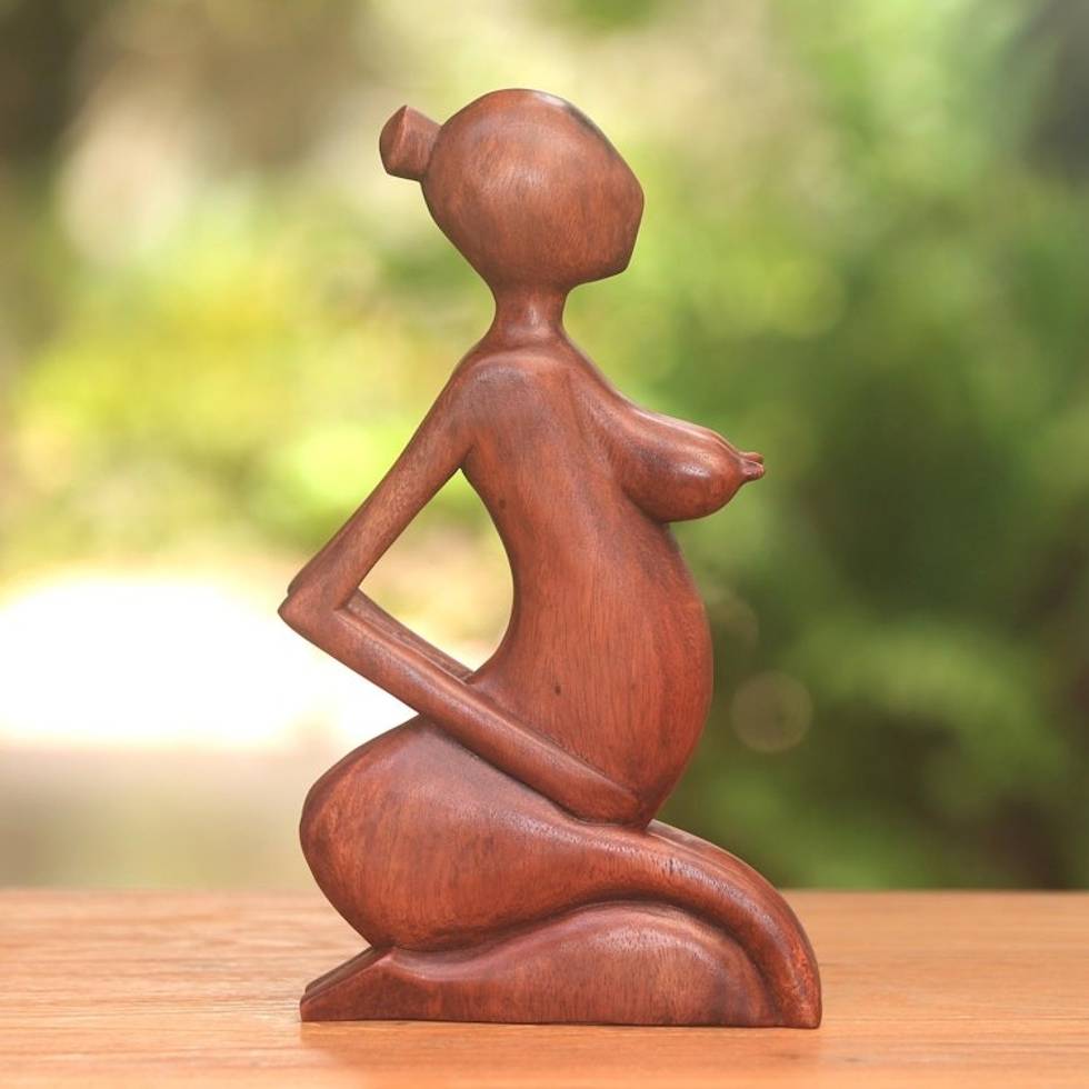 Hand-Carved Maternity-Themed Wood Sculpture from Bali 'Maternal Mother' Item ID: 2671736601