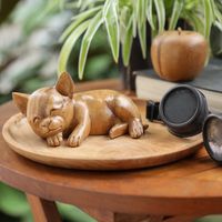 Hand-Carved Natural Suar Wood Chihuahua Figurine from Bali 'Sleeping Chihuahua' Item ID: 2671764552