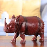 Hand-Carved Neem Wood Rhino Sculpture from India 'Rhino Majesty' Item ID: 2671790028