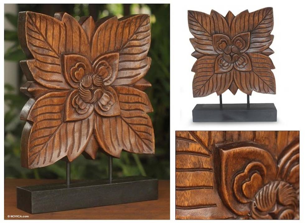 Hand Carved Rain Tree Wood Sculpture 'Sweet Thai Blossom' Item ID: 2671815396