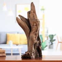 "One day I happened to notice an old sculpture my uncle had made. It was all roughly colored, but there was something interesting about the piece. I removed the paint and modified it using my own creativity and it came out really well. This is how I started my profession of wood sculpting. I started collecting old wood from the jungle and sculpting it into unique pieces of art.