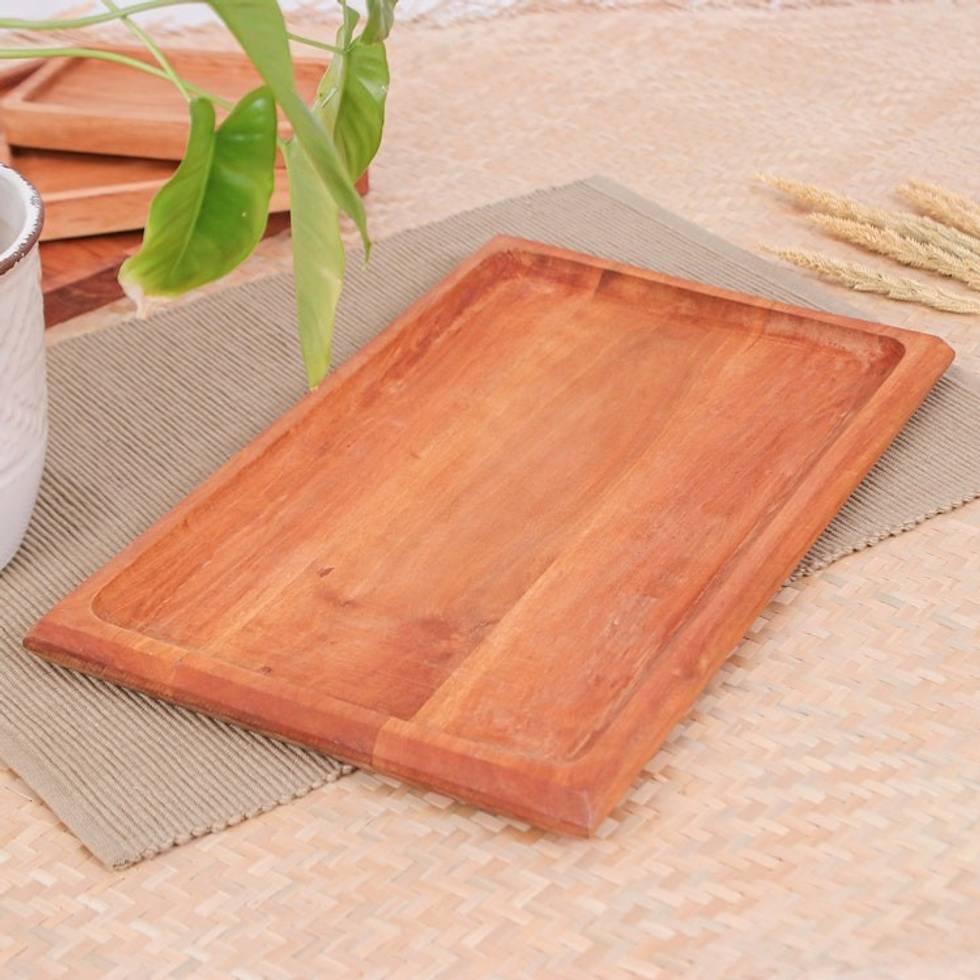 Hand-Carved Rectangle Longan Wood Tray in a Natural Brown 'Moments of Delight' Item ID: 2671798094