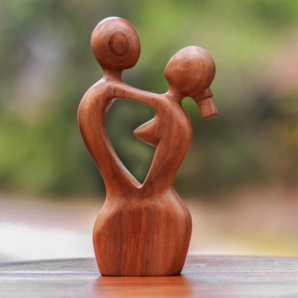 Hand-Carved Romantic Suar Wood Sculpture from Bali 'Romance Dance' Item ID: 2671744834
