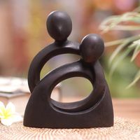 Hand-Carved Romantic Suar Wood Sculpture of Couple Hugging 'Endless Embrace' Item ID: 2669993766