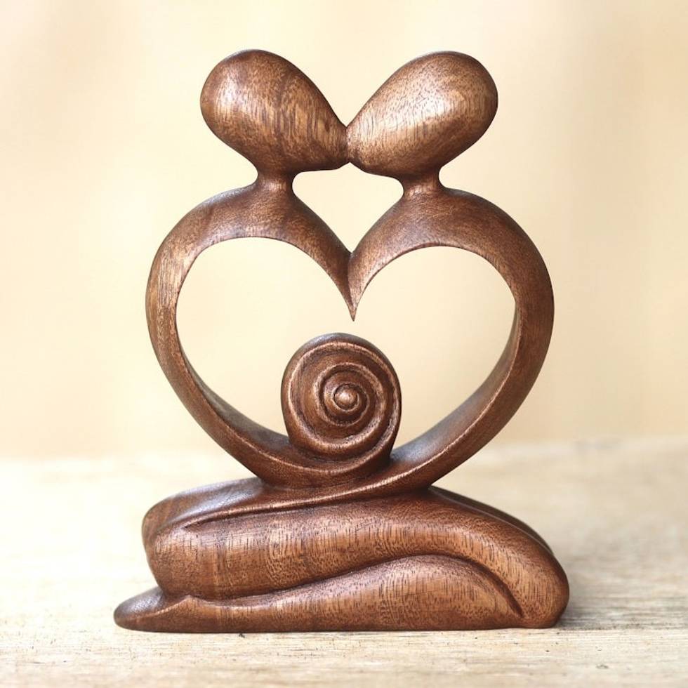 Hand Carved Romantic Wood Sculpture 'Love of My Life' Item ID: 2669891558